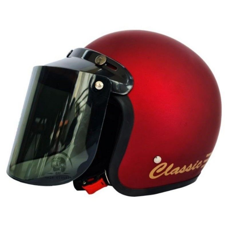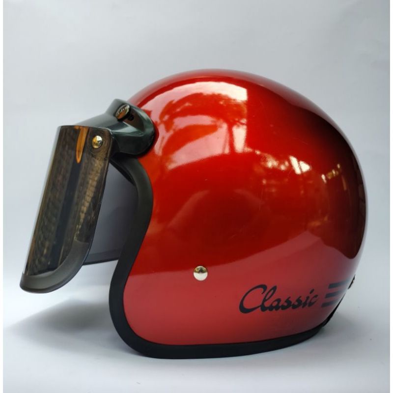 Kekurangan - Kekurangan membeli [PROMO] Helm Bogo Retro Classic Kaca Flat Injak Helm Bogo Murah -SNI- di Toko ini