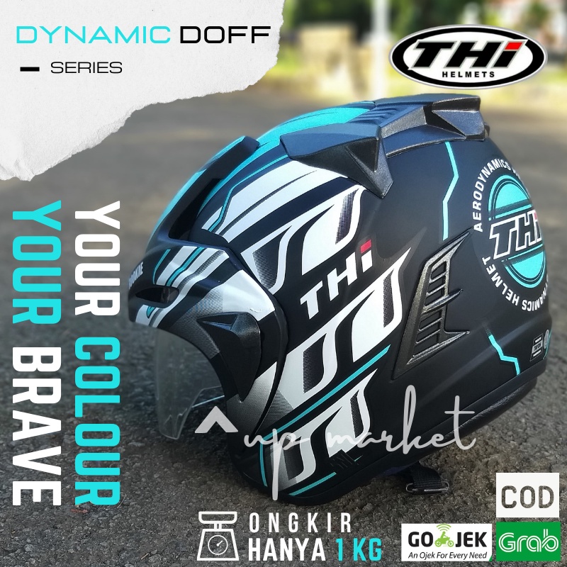 Helm Helem Helmet Motor Half Face Sport Pria Cowok Dewasa Dj Maru Keren Hijau Tosca Hitam Doff SNI