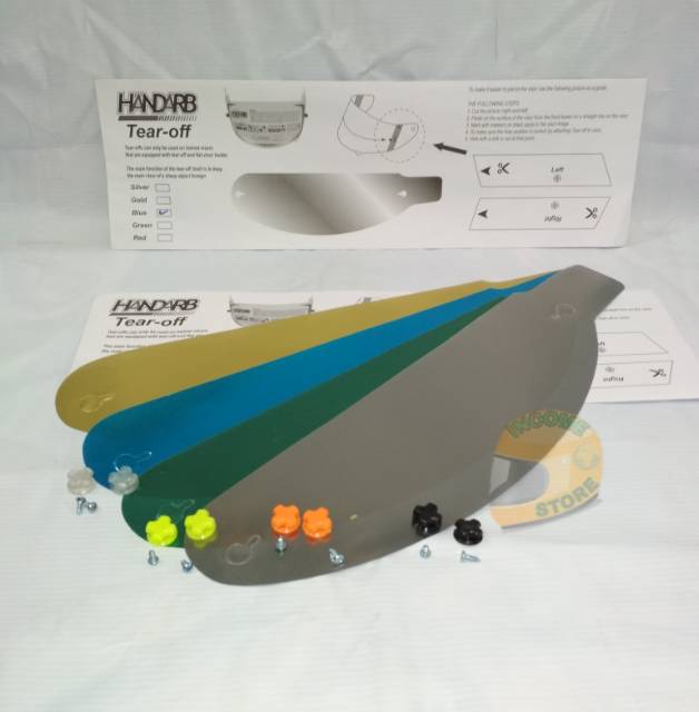 Produk ini memiliki 6 Variasi Warna Tear Off yaitu : Silver,Gold,Blue,Hijau,Bening,Redgold,