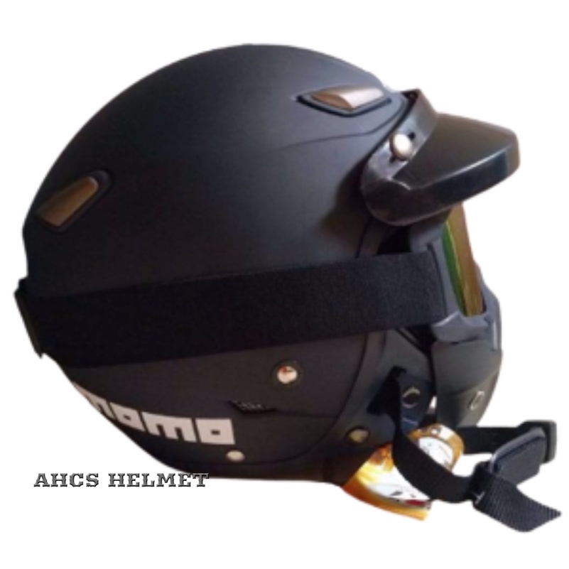 Harga Helm Motor Retro JPN Momo Komplit Dengan Kacamata Goggle Mask AHCS HELMET